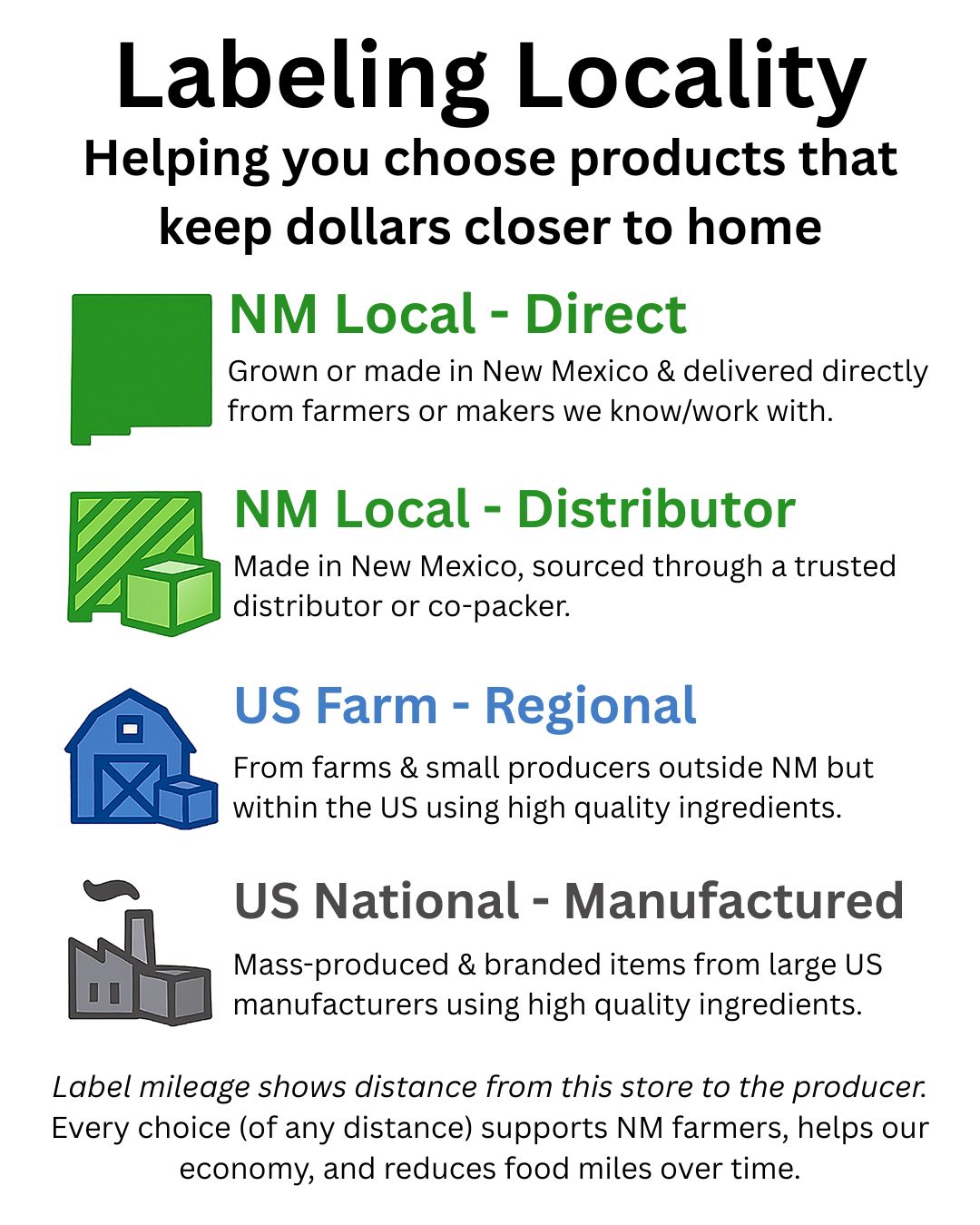 Unlike farmers markets (weekends only; tricky parking), 2 stores (Belen & ABQ) open daily with real parking lots. Come browse, ask questions, chat with the staff. It's like a farmers market disguised as a grocery store.